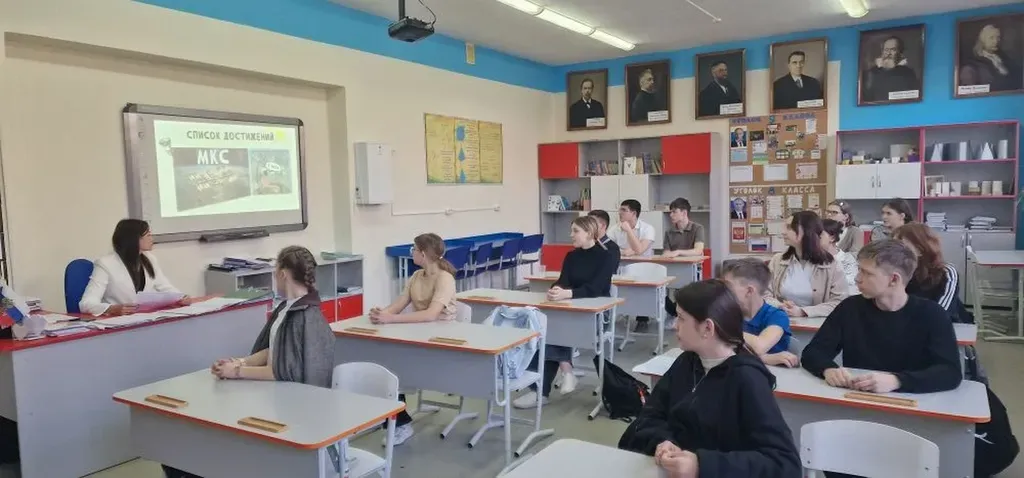 Во время урока состоялся интересный и важный диалог со школьниками о том, что космос намного ближе, чем кажется. Увлечённые темой, ребята получили ответы на такие важные вопросы, как: Благодаря кому и чему Россия – одна из ведущих космических держав? Почему развитие космической отрасли всегда было и будет одним из ключевых направлений развития нашей страны? Кто сегодня трудится в космической отрасли?